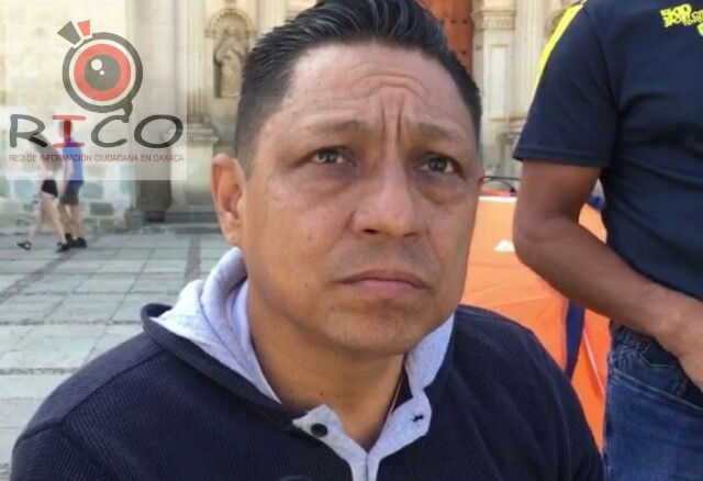 Jose Manuel Casas representante de los atletas para olímpicos se manifiestan pacíficamente esta mañana, para que el gobierno del estado que encabeza Alejandro Murat les pueda otorgar el pago de sus becas.