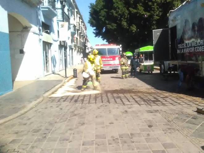 Presentó una falla por lo que origino un derrame de combustible (diesel), surgiendo la incertidumbre de quienes transitan en esta parte del centro histórico por lo que fue reportado al 911 para pedir el apoyo.