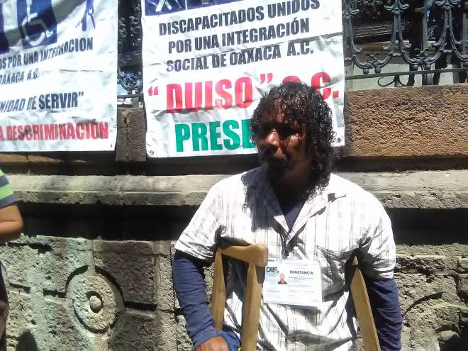 Godofredo Solis Calixto presidente de la organización de Discapacitados Unidos por una Integración Social de Oaxaca A.C., quien denuncia abusos por parte de inspectores del municipio de Oaxaca de Juárez, en especial de Raul Ramiro Reyes Ramos por que se ha encargo de hostigar a las personas con discapacidad en el centro histórico de esta ciudad capital cuando se ganan el sustento para llevar a su hogar, este personaje el día de ayer trato de arrebatarle la bocina a dos de mis compañeros que son totalmente ciegos y que es su herramienta de trabajo, este mismo inspector la semana pasada le arrebato su carrito a una señora de la tercera edad.