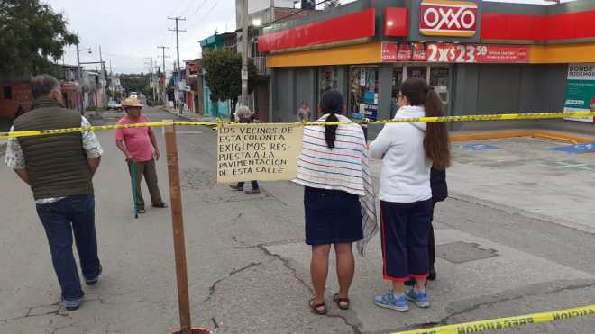 Vecinos de la colonia antiguo aeropuerto perteneciente al municipio de Santa Lucia del Camino bloquean la calle de Orquídeas esquina Río Verde.