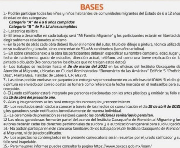13.- No podrán participar en este concurso familiares de los trabajadores del Instituto Oaxaqueño de Atención al Migrante, ni del jurado calificador.