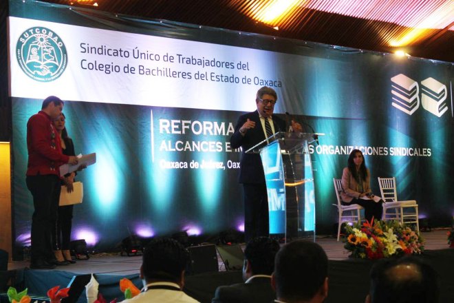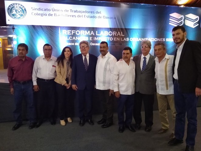 Al conmemorar el 32 aniversario de la fundación del Sindicato Único de Trabajadores del Colegio de Bachilleres del Estado de Oaxaca, los agremiados a este organismo sindical, se reunieron para ser partícipes de una conferencia Magistral denominada “Reforma Laboral 2019”, alcances e impacto en las organizaciones sociales.