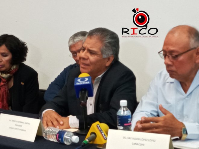 En conferencia de prensa el Licenciado Ernesto Gutiérrez Jiménez Presidente la CANACO SERVYTUR OAXACA, y acompañado de el Licenciado Salvador López López CANACOPE, C.P Reyna Santillan del Sistema Estatal Anticorrupción, Arq. Felipe Palacios de la CMIC, entre otros., anuncian que tiene el privilegio de encabezar la conducción de los esfuerzos de su gremio como Presidente del Observatorio Oaxaqueño del Delito y encabezando la Comisión Anticorrupción de la COPARMEX, trabajado en compañía de mis compañeros presidentes de las demás cámaras aquí presentes con toda la responsabilidad, entusiasmo y convicción, convencidos de que desde nuestra trinchera, tenemos la inversión como recurso para colaborar con el Gobierno del Estado que encabeza Alejandro Murat.