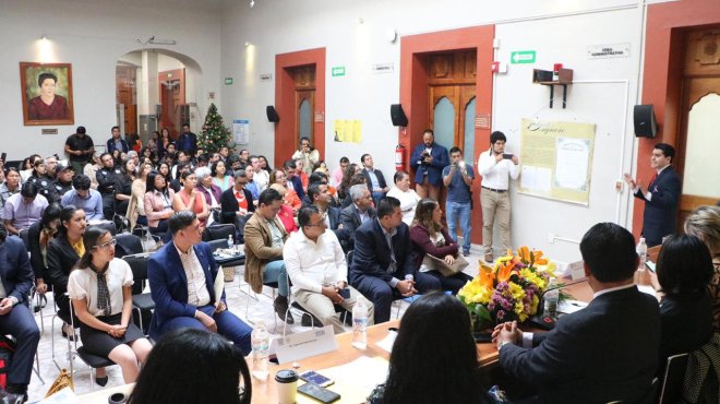 Esta mañana en conferencia de prensa la Asociación Estudiantil de Costeños en Oaxaca encabezados por Elvia Serrano Hernández quienes son los encargados de organizar el «fandango costeño» aquí en la ciudad de Oaxaca y en compañía del Coordinador General del evento Carlos Pacheco Ortega y quién es parte fundamental de este evento.