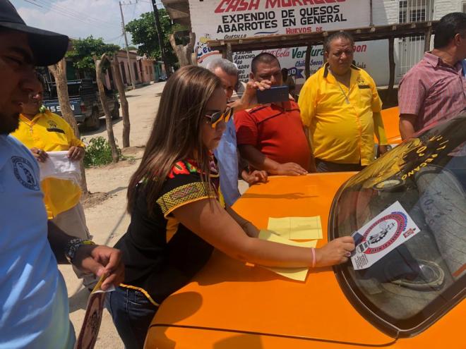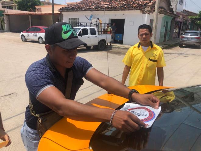 En el centro de la comunidad de este municipio istmeño se reunió un grupo representativo de trabajadores del volante, con quienes se inició con la tradicional pega de calcas, actividad que fue encabezada por la secretaria de Acción Política de la Confederación Libertad, Guadalupe Díaz Pantoja,