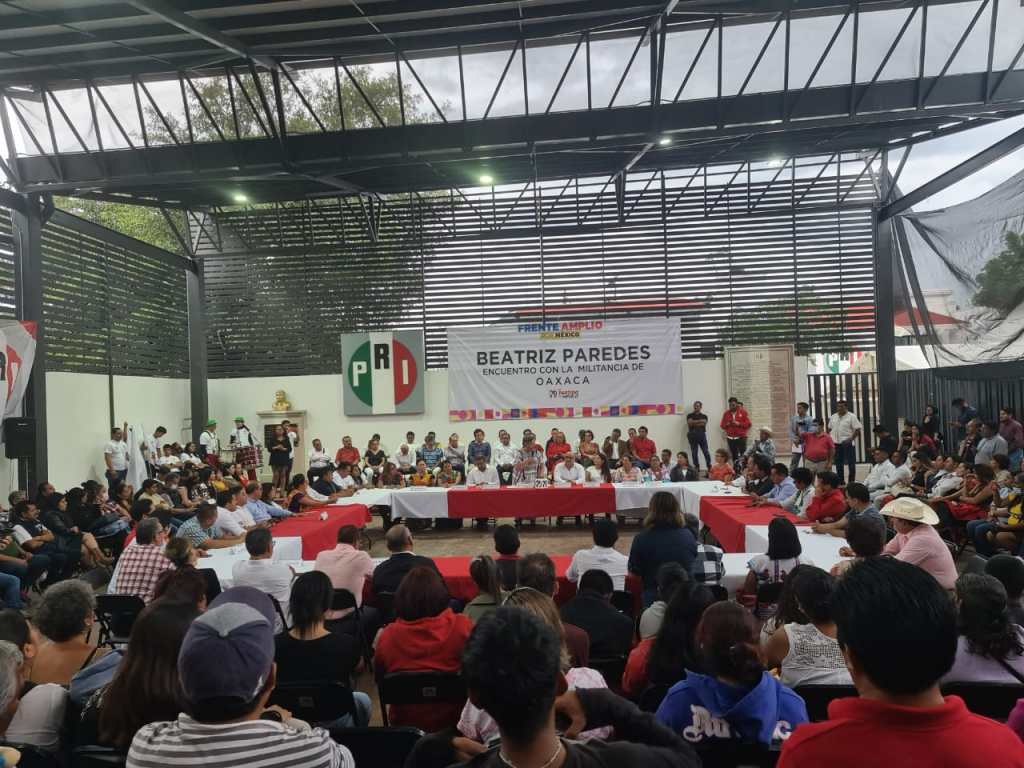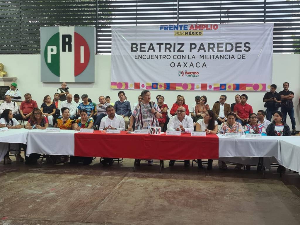 Junto a Javier Villacaña Jiménez y Lizbeth Concha Ojeda, quienes encabezan el Comité Directivo Estatal del PRI, y el coordinador legislativo priista, Alejandro Avilés Álvarez, diputados y diputadas, ex dirigentes del tricolor, y cientos de militantes, Beatriz Paredes agradeció el apoyo de las y los oaxaqueños, a quienes aseguró que el Revolucionario Institucional no lo hacen las dirigencias, lo construyen los liderazgos y las personas que son congruentes con sus principios.