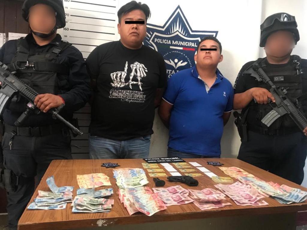 Elementos de la Policía Municipal de Santa Lucía del Camino detuvieron a dos personas portando arma de fuego y más de 10,000.00 en efectivo.