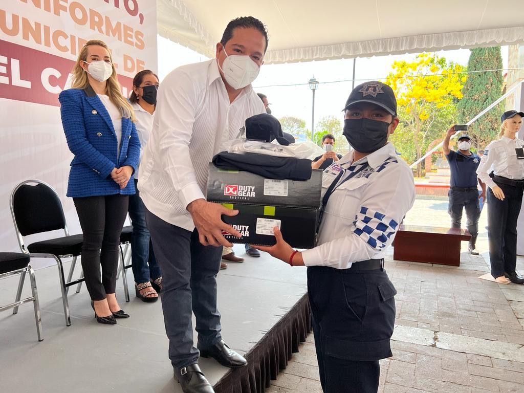 Además, las y los elementos de seguridad municipal, han sido beneficiados constantemente con mejor equipo táctico para el cumplimiento de sus funciones, todo ello gracias a las puntuales contribuciones que realizan las y los ciudadanos, aportando cada peso en mejorar la seguridad en el municipio.