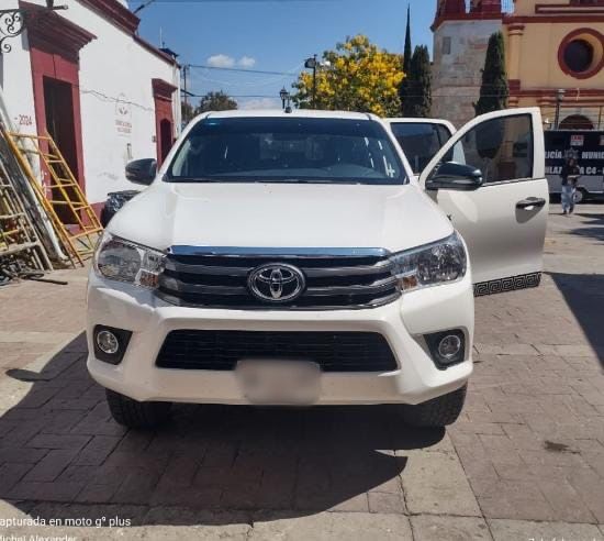Gracias a su enlace con el Centro Control de Comunicación y Comando (C4), se detectó una camioneta marca Toyota modelo Hilux de color blanco, la cual circulaba hacia el municipio de Santa Lucía del Camino y que contaba con reporte de robo.