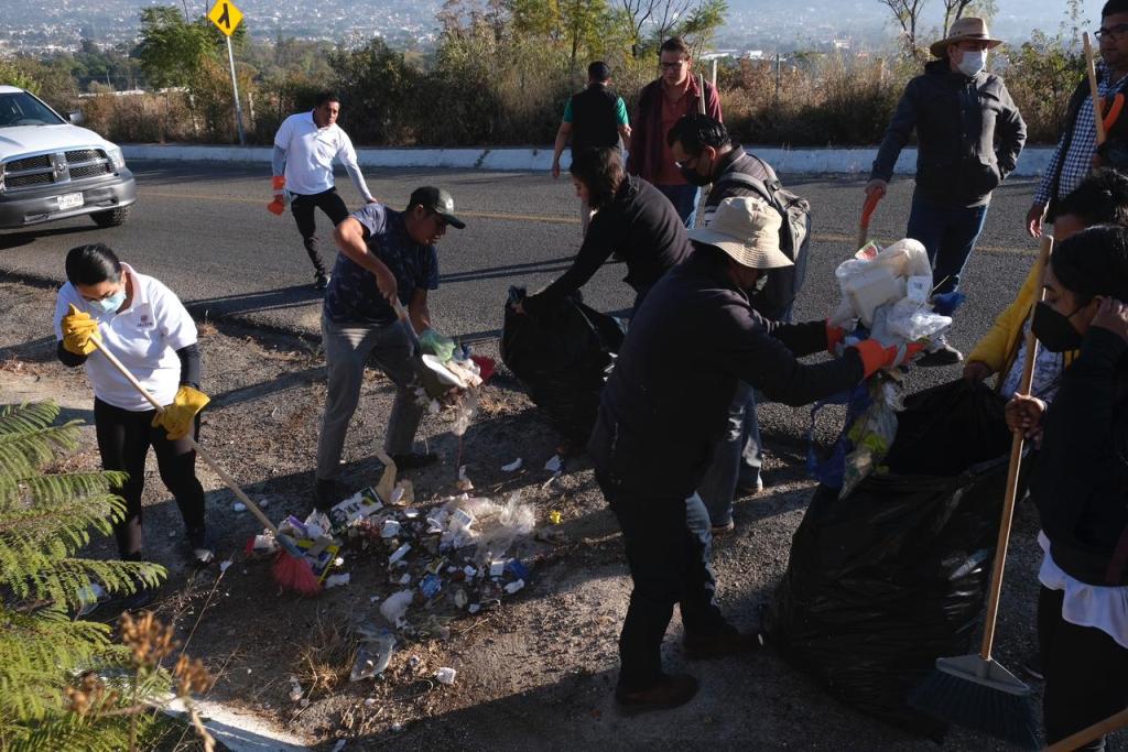 Coordina Gobierno del Estado de Oaxaca tequio de limpieza en la carretera a Monte Albán.
