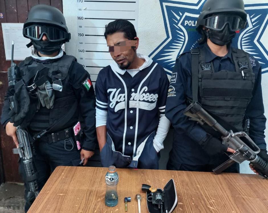 Elementos de la Policía Municipal de Santa Lucía del Camino detienen a persona por portación de arma de fuego sin permiso correspondiente.