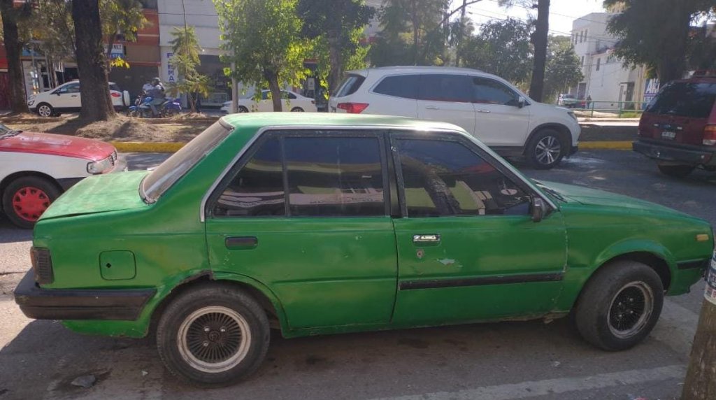 Seguidamente, la Policía de Santa Lucía del Camino realizó la inspección del automóvil marca Nissan tipo Tsuru de color verde, donde se logró detectar una mochila de color rosa con franjas blancas, que en su interior contenía un arma de fuego calibre 22 de color negro, con empuñadura de madera color amarillo.