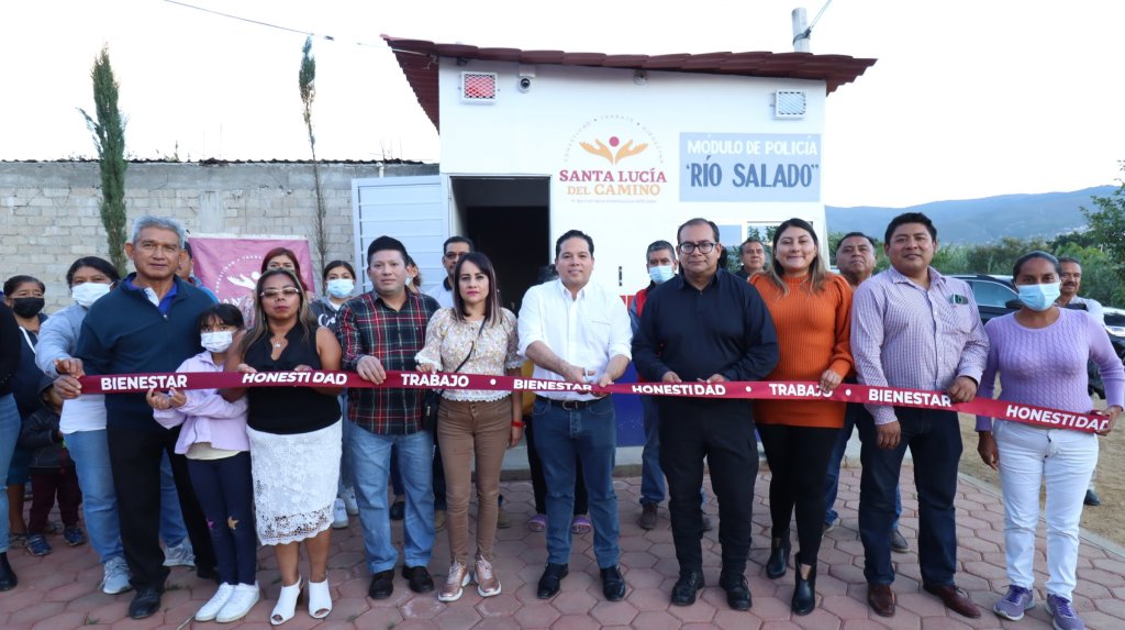 Acompañado por los presidentes de la colonia Calicanto y del Fraccionamiento Ejidal, así como concejales y el director de Seguridad Municipal, Marcos Fredy Hernández, el alcalde de Santa Lucía del Camino reiteró su compromiso de velar por el bienestar de las familias, y prueba de ello es la entrega de este Módulo de Policía, que además de estar conectado al C4, también integrará el proyecto del C2 en el municipio.