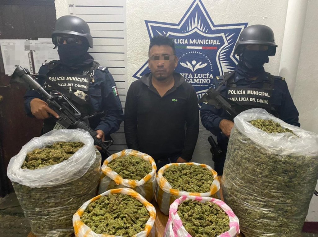 Elementos de la Policía Municipal de Santa Lucía del Camino realizaron el aseguramiento de una camioneta, una persona y de seis bolsas que contenían en su interior hierba seca con las características de la marihuana.