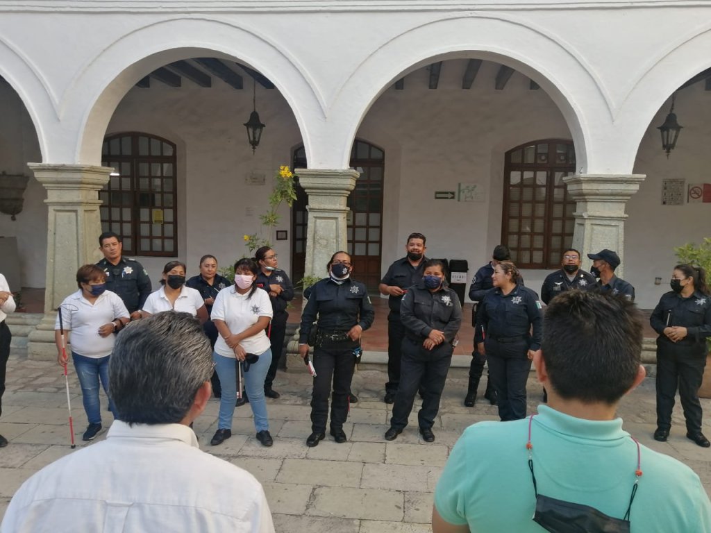 Con el objetivo de desarrollar las habilidades necesarias para auxiliar y brindar el trato de manera oportuna, asertiva y sensible, a las personas con discapacidad, la Secretaría de Seguridad Ciudadana, Movilidad y Protección Civil, a través de la Unidad Multidisciplinaria de Atención Psicológica y Legal, imparte el programa «Policía Municipal Inclusiva; talleres de sensibilización e inclusión de las personas con discapacidad visual.