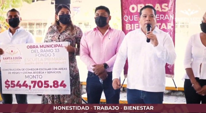 El H. Ayuntamiento de Santa Lucía del Camino, trabaja para mejorar las condiciones que potencien el aprovechamiento académico de niñas y niños del municipio. Es por ello que el presidente municipal Juan Carlos García Márquez anunció el inicio de la construcción del comedor escolar, bodega y servicios, en beneficio de la comunidad estudiantil de la Escuela Primaria Josefa Ortiz Domínguez.
