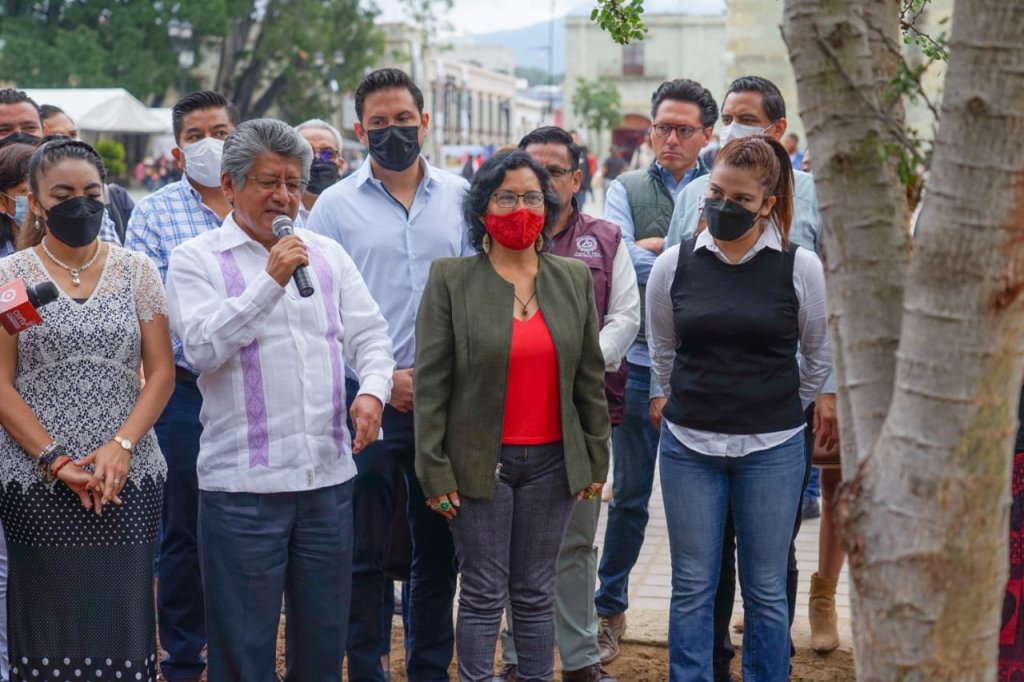 Acompañado de oaxaqueñas y oaxaqueños, así como integrantes de su cabildo y funcionarios públicos estatales y municipales, el primer concejal, Francisco Martínez Neri, dio la bienvenida a este ejemplar, que integra para embellecer el zócalo capitalino.