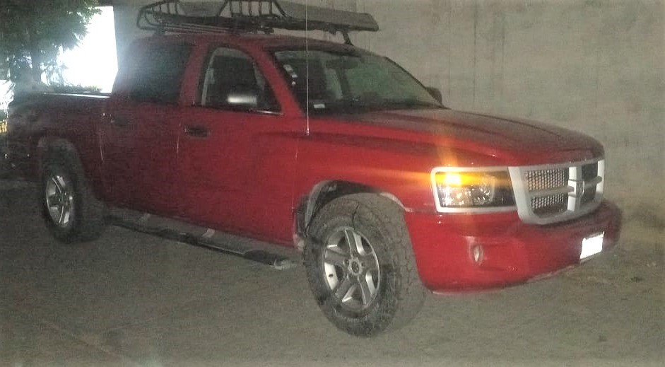 La unidad de motor marcha Chrysler tipo Dakota de color rojo, fue asegurada la noche de este jueves 5 de mayo, sobre la carretera internacional 190, esquina con calle Independencia de la agencia de San Francisco Tutla; ahí, los elementos de seguridad vial marcaron el alto a dicha camioneta.