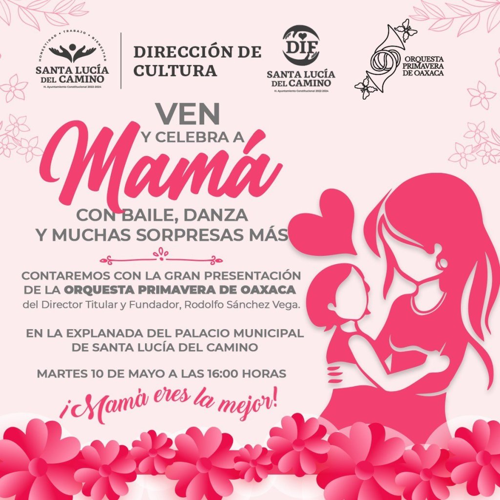 El DIF Municipal de Santa Lucía del Camino invitan a festejar a las mamás en su día.