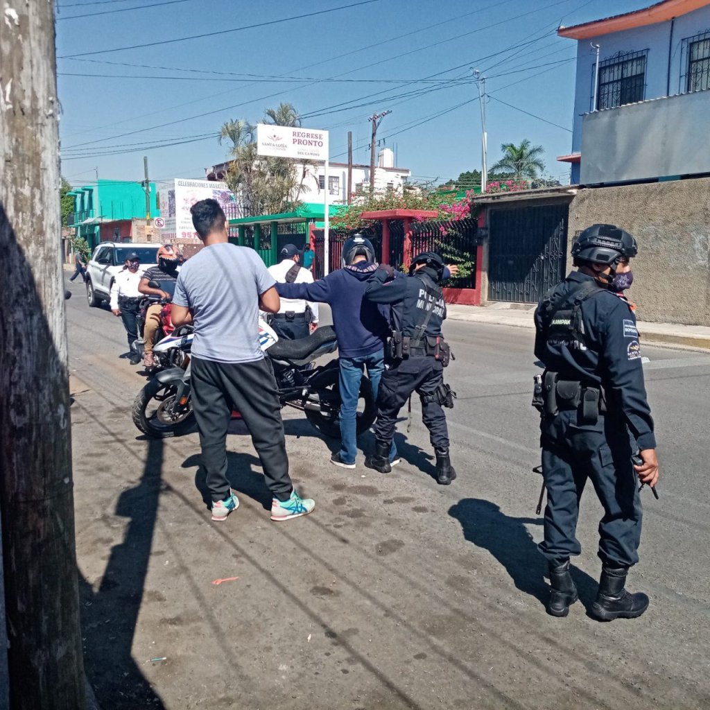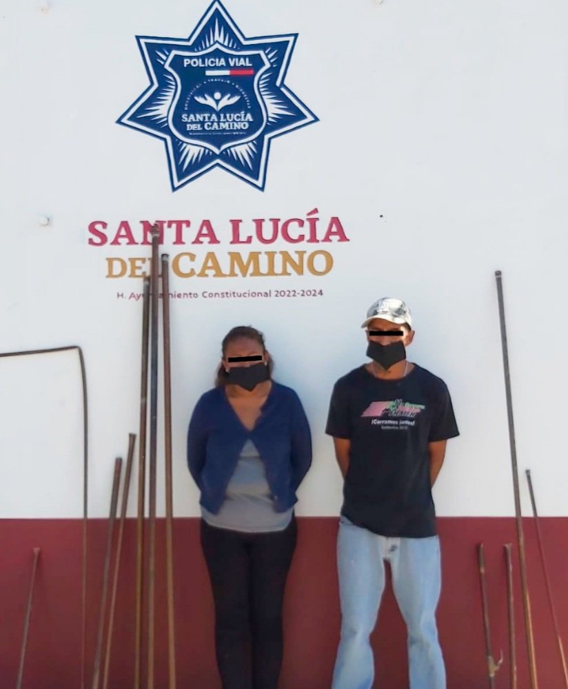 Los policías viales dieron alcance a la pareja en la calle La Raya de la Cabecera Municipal de Santa Lucía del Camino, momento en que, las personas fueron cuestionadas por la procedencia de los tubos de cobre en sus manos, y al no poder comprobar lo declarado, fueron detenidos por los elementos.