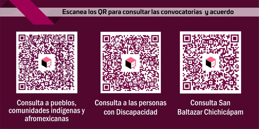Se trata de la consulta previa, libre, informada, de buena fe y culturalmente adecuada a los pueblos y comunidades indígenas y afromexicanas; la consulta previa, libre, informada, de buena fe a las personas con discapacidad; y la consulta previa, libre, informada, de buena fe y culturalmente adecuada en el municipio de San Baltazar Chichicápam.