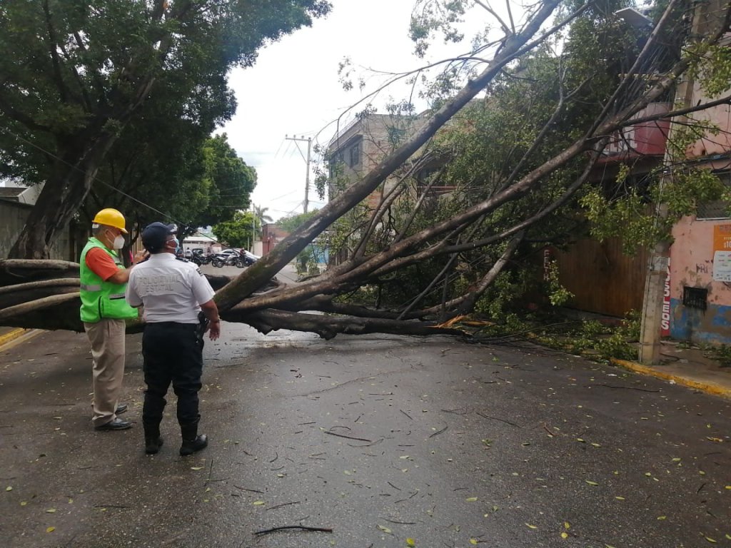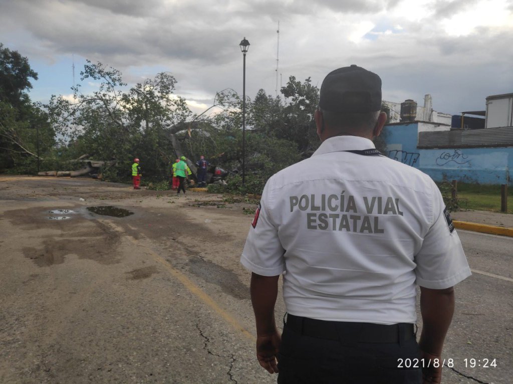 Por su parte, elementos de la Policía Vial Estatal desplegó un dispositivo vial, en las diversas avenidas y calles que se vieron afectadas por las mencionadas caídas de árboles, ramas, espectaculares, entre otras.