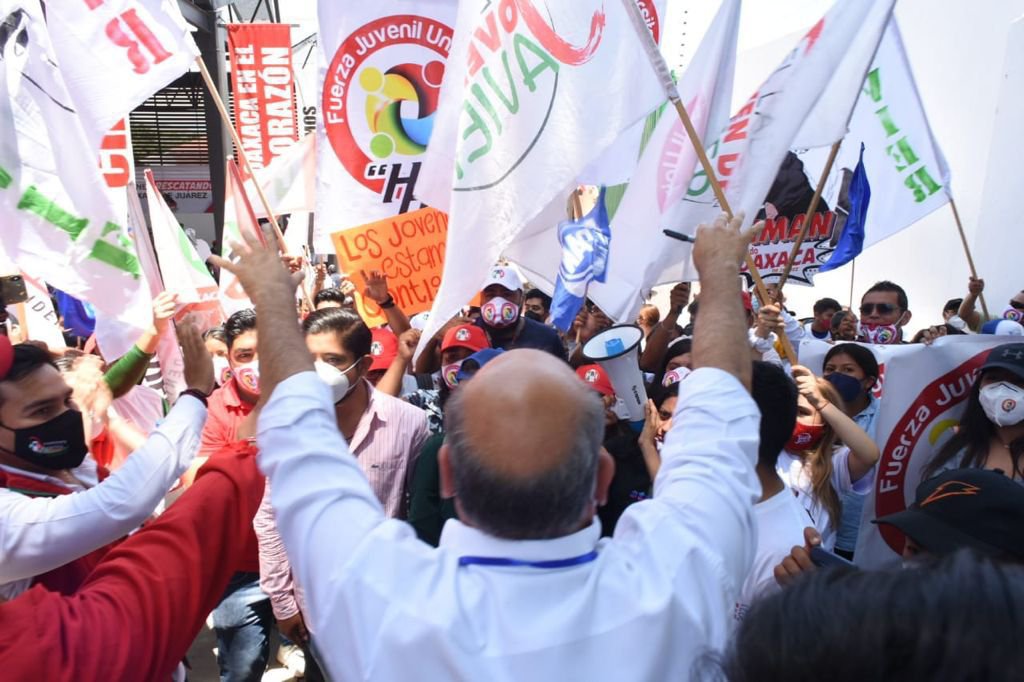 Acompañados por la música, chinas oaxaqueñas, marmotas, pancartas y miles de personas con las medidas sanitarias pertinentes, Villacaña Jiménez, Alejandro Moreno y aspirantes a diversos cargos de representación popular, iniciaron su recorrido en el Paseo Juárez, recibiendo muestras de apoyo y reafirmando compromisos con la ciudadanía.