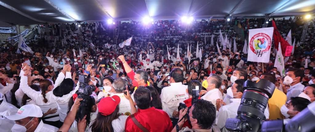 - Miles de personas acompañaron a los candidatos de “Va por Oaxaca” y al líder del PRI, Alejandro Moreno en calenda por la ciudad