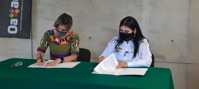 El Instituto Oaxaqueño de Atención al Migrante (IOAM), que encabeza la Licenciada Aida Ruiz García y el Instituto de Cultura Física y Deporte de Oaxaca que encabeza Monserrat de los Ángeles Aragón Heinze, firman convenio de colaboración.