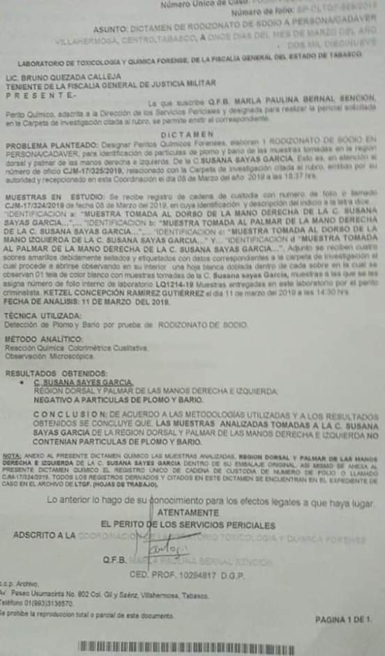 A las 04:30 horas del 8 de marzo de 2019, la subteniente intendente Susana Sayas García “decide suicidarse” en la base militar del 37 Batallón de Infantería, ubicado en Villahermosa, Tabasco.