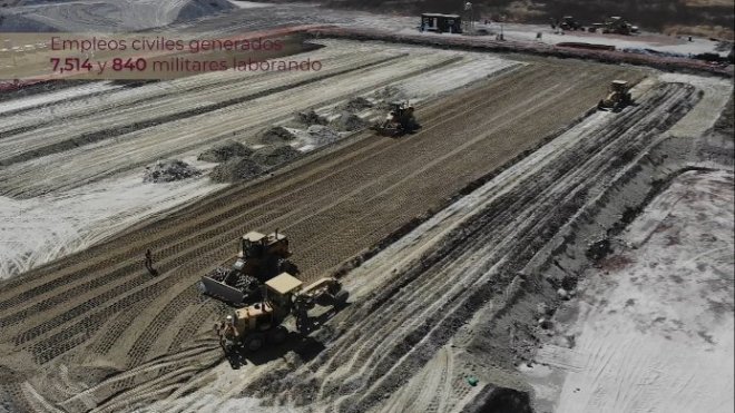 El avance general de la obra es de un 3.96% en 109 días, con 1,785 millones de pesos, se han generado empleos a personas civiles en un total de 7,514 personas y 840 efectivos militares quienes laboran hasta el momento.